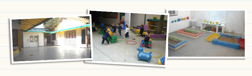 Equipado con materiales variados propios de cada espacio (triciclos, palanganas, aros, ruedas plásticas, pelotas, trepadoras, cubos de goma espuma, colchonetas y juguetes para la arena), que brindan la posibilidad de la libre exploración y favorecen la expresión creativa. El niño encuentra los elementos y objetos de juego guardados y en orden, lo cual le brinda la posibilidad de mirarlos, conectarse con el deseo y elegir con que jugar, desarrollar su juego explorando y creando a partir de los objetos y con los otros niños.